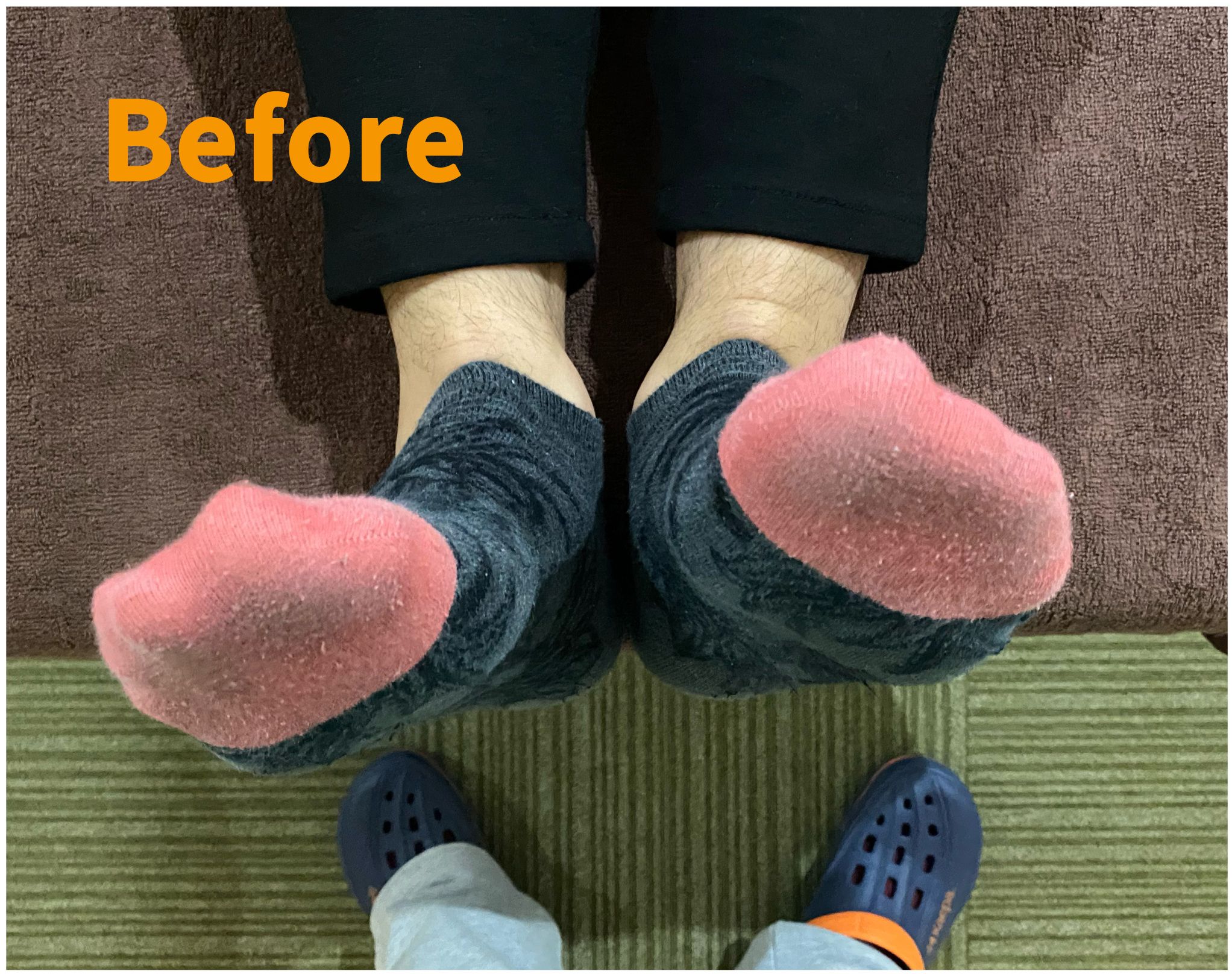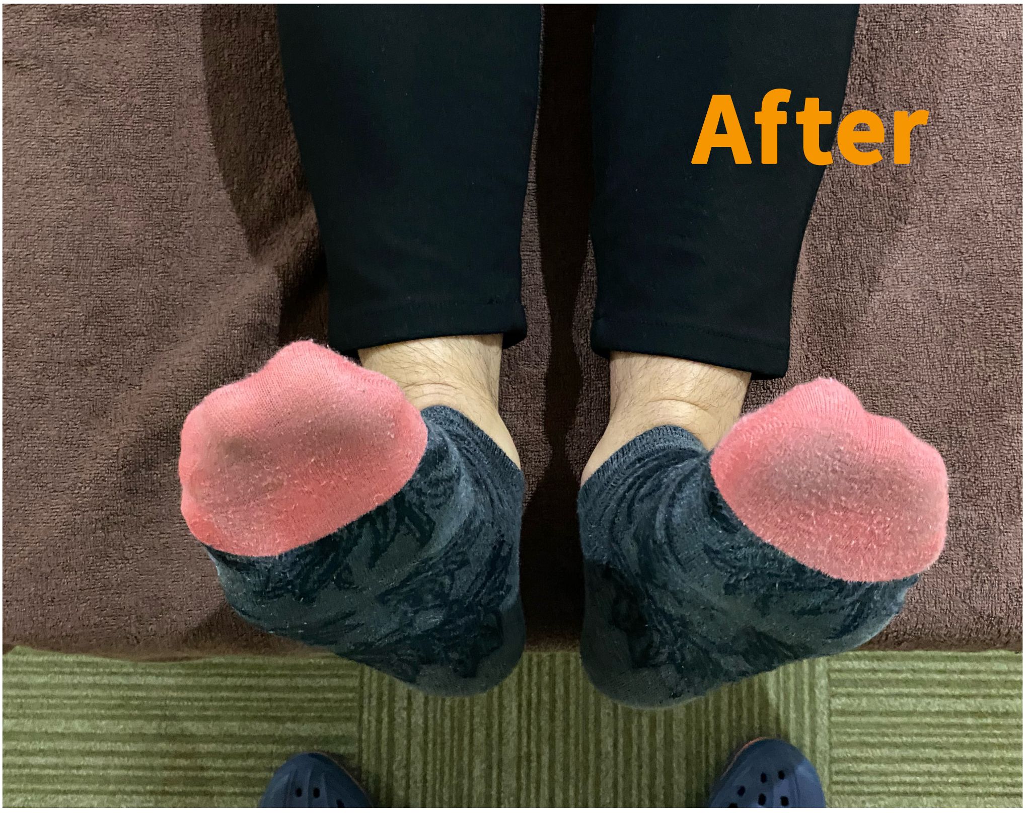 施術前は背屈(つま先を足の甲側に曲げる動作)が出来ていませんでしたが、施術後はしっかりできています!